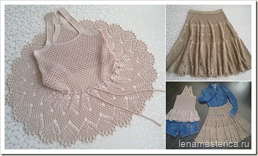 Юбка. Лена Мастерица Пряжа Alize Forever, цвет 298. Микрофибра (акрил) 100%, 300м в 50г, 5 мотков. Крючок № 1,75 Размер 34-36-38 (40-42-44). За счет того, что юбка широкая, на резинке, и топ на кулиске (которая дает возможность регулирования по талии), то подойдет костюм на несколько близких размеров. Юбка на резинке, длина — 55 см. Для юбки также набрала 231 петлю и вязала от талии вниз по схеме (схема ниже). В данном случае, ничего из схемы не исключала, вязала полностью все по схеме. Затем от талии связала вверх см 10 столбиками без накида, подшила и вставила широкую резинку.
